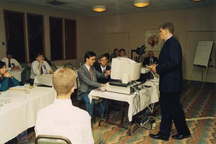 A team from Moriarity High School is evaluated the day before the awards ceremony at the final judging event.